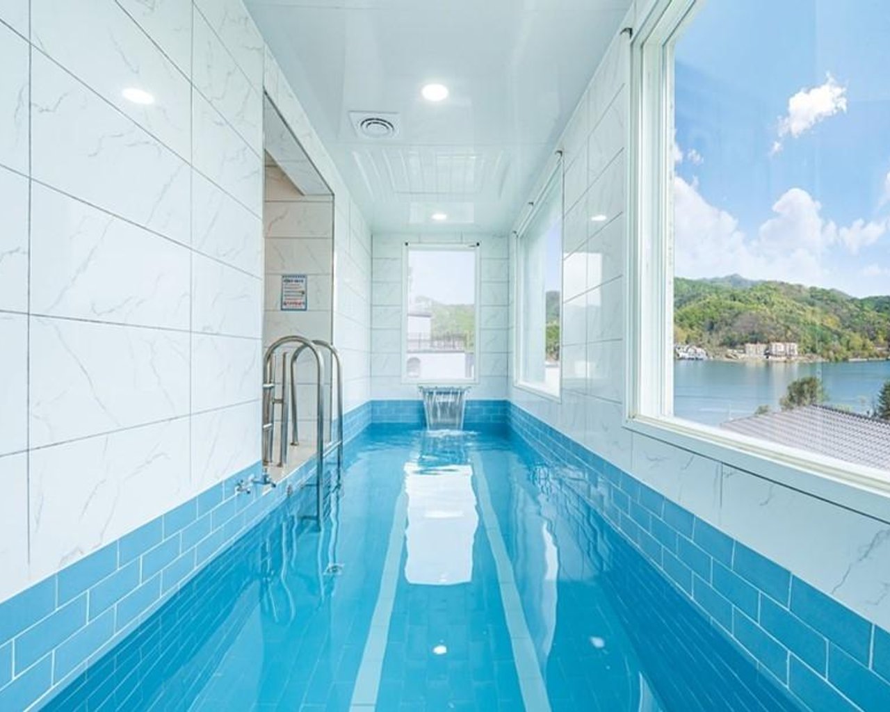 야간 조명이 설치되어 밤에도 아름다운 분위기에서 수영을 즐길 수 있습니다.